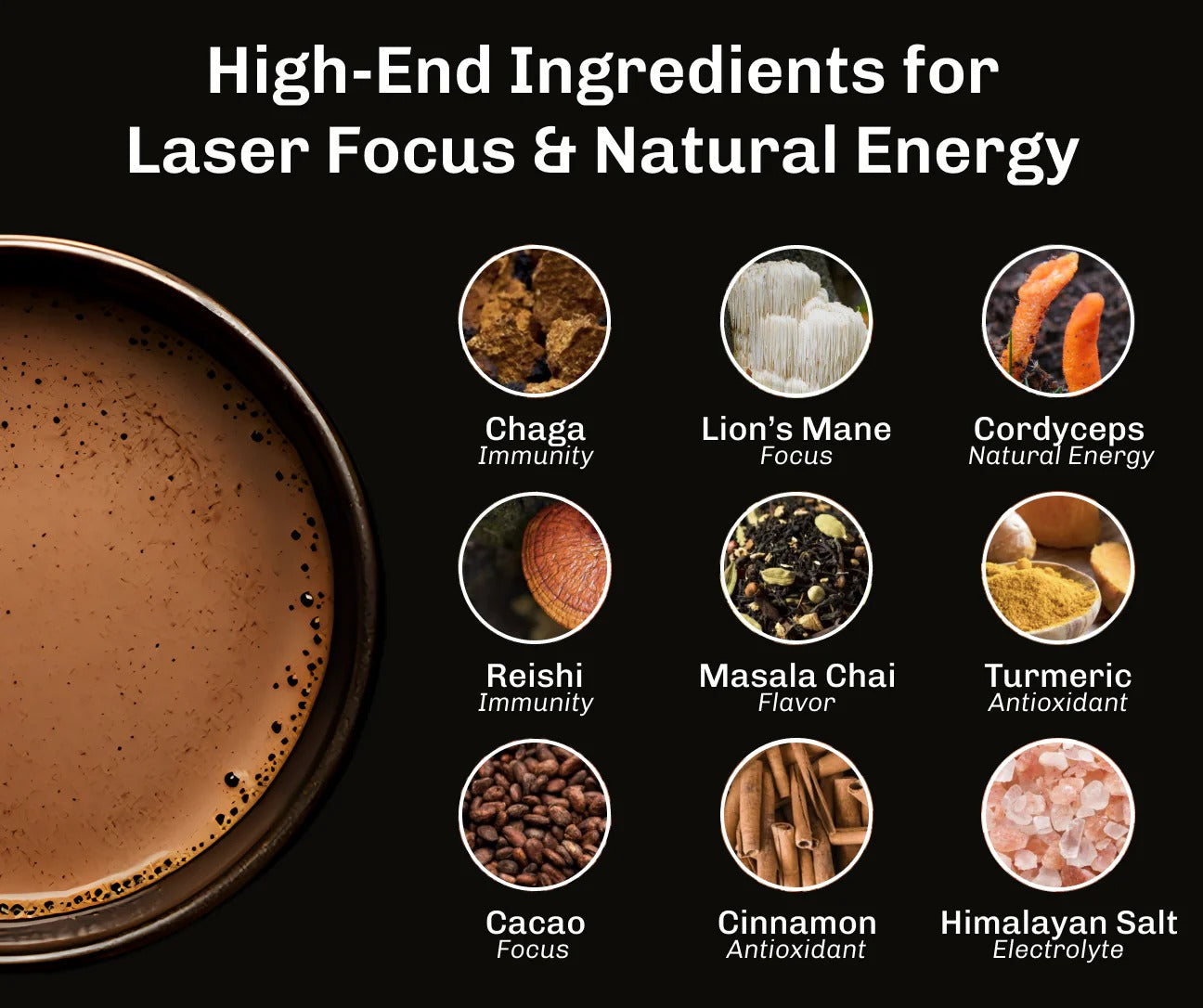 Rich cocoa melts into a earthy masala chai, that feels like hot cocoa and a chai latte had a baby
